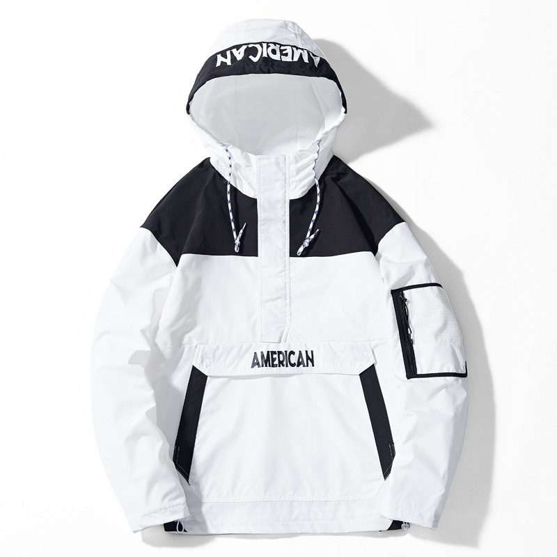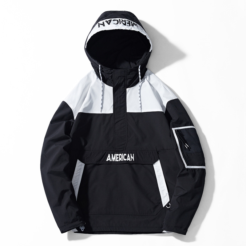 Bulk Utility Patchwork Pullover Jackets For Men Custom Hip Hop Streetwear Anorak Outdoor Men Hooded Windbreaker Jacket