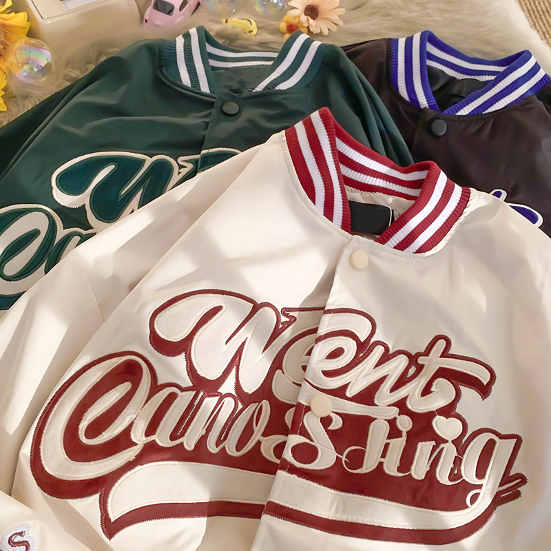 Hip Hop Couple Canvas Bomber Jacket Men Custom Letter Street Sport Track Mens Oversized Outdoor Windbreaker Varsity Jacket